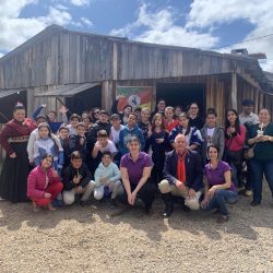 Participando da recepção aos alunos da Escola Estadual Silvania Regina de Ávila Alves, a convite dos amigos do Piquete Potro Xucro. Os estudantes almoçaram no local e experimentaram um típico carreteiro. Curiosas, as crianças visitaram os demais piquetes do Parque e descobriram um pouco mais sobre a cultura rio-grandense. #semanafarroupilha